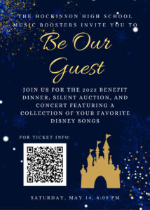 Tickets are now available for the 13th Annual Hockinson High School Benefit Dinner, Auction, and Concert on Saturday, May 14th, 2022. Please consider reserving your ticket, or reserve an entire table for 8 and fill it with your friends and family! A limited number of tickets are available for this event. Reserve yours today! Tickets sales for the event will end on April 27th. All tickets are purchased online at this link auctria.events/HockBand